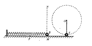 25.(20分)如下图所示,水平地面上方被竖直线MN分隔成两部分,M点左侧地面粗糙,动摩擦因数μ=0.5,右侧光滑。MN右侧空间有一范围足够大的匀强电场。在O点用长为R=5m的轻质绝缘细绳拴一个质量mA=0.04kg、带电量q=+2×10-4C的小球A,在竖直平面内以v=10m/s的速度做顺时针匀速圆周运动,运动到最低点时与地面刚好不接触。处于原长的弹簧左端连在墙上,右端与不带电的小球B接触但不粘连,B球的质量mB=0.02kg,此时B球刚好位于M点。现用水平向左的推力将B球缓慢推至P点(弹簧仍在弹性限度内),MP之间的距离为L=10cm,推力所做的功是W=0.27J,当撤去推力后,B球沿地面向右滑动恰好能和A球在最低点处发生正碰,并瞬间成为一个整体C(A、B、C均可视为质点),(取g=10m/s2)求: