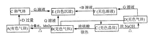 (14分)A、B、C、D、E、F、G是中学里常遇到的一些物质,它们之间有如下转化关系,有些必要的信息已在框图中注明: