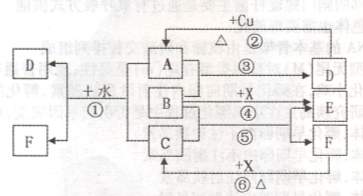 26.(10分)已知A-F是中学化学中常见的物质,其中A、C、E、F为气体,B、D为液体,A是一种大气污染物,F的浓溶液与X共热通常用于实验室制备单质C,X是一种黑色粉末,B分子中有18个电子。反应中部分生成物已略去。试回答下列问题: