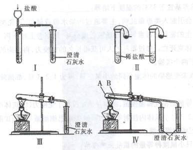 27.(21分)某校四个化学课外小组为了鉴别碳酸钠和碳酸氢钠两种白色固体,分别用不同的方法做了以下实验,如图I Ⅳ所示。