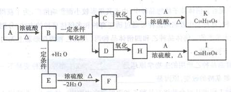 物质A的分子式为C9H10O3,在一定条件下可发生下列转换,其中A、E互为同分异构体,且都能与碳酸钠反应产生二氧化碳;F是含有三个六元环的化合物,K、I是酯化反应的产物