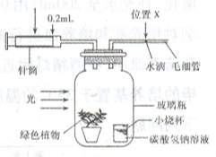 (4)如果在原实验中只增加光照强度,则针筒的容量仍维持在0.6mL读数处。在另一相同实验装置中,若只将温度提升至30℃,针筒容量需要调至0.8mL读数,才能使水滴维持在X的位置上。比较两个实验可以得出什么结论?__________________________。