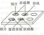 ①装有铜片的孔穴中溶液呈蓝色②装有胆矾的孔穴中固体的颜色变自③装有铁片的孔穴中溶液呈浅绿色④装有铁片的孔穴中溶液呈黄色⑤装有蛋清溶液的孔穴中呈黄色