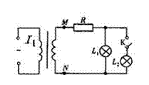 如图所示,理想变压器的副线圈上通过输电线接有两个相同的灯泡L1和L2,输电线的等效电阻为R。开始时,开关S断开,当S接通时,以下说法中正确的是 ( )
