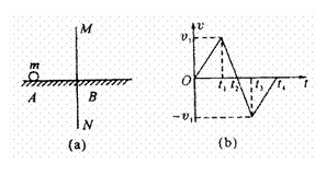 如图(a)所示,光滑水平面上质量为m的小球在直线MN的左方就会受到水平恒力F1作用(小球可视为质点),在MN的右方除受到F1作用外还受到与F1在同一直线上的恒力F2作用。现设小球由A点从静止开始运动,小球运动的v – t图象如图(b)所示,由图可知下列说法正确的是 ( )