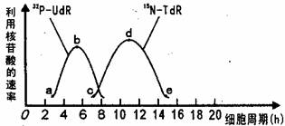 2、科学家在研究蚕豆根尖分生区细胞的有丝分裂周期时,分别用放射性同位素15N标记胸腺嘧啶脱氧核苷酸(15N-TdR),用32P标记尿嘧啶核糖核苷酸(32P-UdR),把两种核苷酸被细胞利用的速率给成曲线如下图。已知蚕豆有丝分裂周期为20h。下列对结果的分析,不正确的是:( )