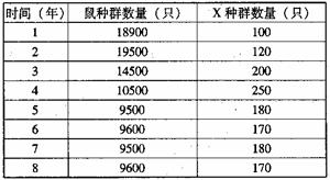 4、在一个草原生态系统中,草是生产者,鼠是初级消费者。现将某动物新物种X引入该生态系统,调查鼠与X的种群数量变化.结果如下表,若不考虑气候和其他生物的影响下列说法正确的是:( )