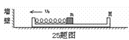(20分)如图所示,轻质弹簧将质量为m的小物块连接在质量为M(M=3m)的光滑框架内。小物块位于框架中心位置时弹簧处于自由长度.现设框架与小物块以共同速度V0沿光滑水平面向左匀速滑动。