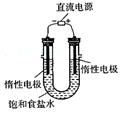 ⑶电解饱和食盐水的装置如图所示,若收集的H2为2L,则同样条件下收集的Cl2 (填“>”、“=”或“<”)2L,原因是 。装置改进后,可用于制备NaOH溶液,若测定溶液中NaOH的浓度,常用的方法为 。