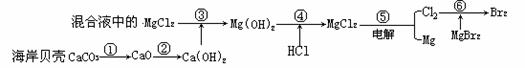 26.海水在蒸馏淡化过程中得到浓盐水,当提取食盐后的母液里还含有MgCl2、MgBr2等混合物,工厂通过以下途径制得金属镁和液溴,