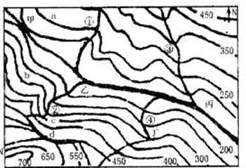 94.图中所表示的①、②、③、④四条河流中,不正确的是