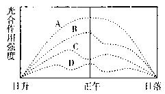 右图表示小麦光合作用曲线,请指出炎热夏季晴天的一天中光合作用变化的曲线是