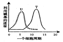 B.大量利用“U”的时期,细胞正在进行大量蛋白质的合成