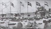 商馆的情景,商馆前的广场上,美国、英国等国家的国