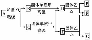 (3)C与固体单质甲在高温下发生反应的化学方程_________________________。固体乙为常见化合物,写出一种固体乙的化学式____________________。