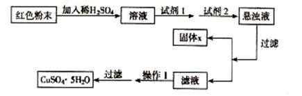 (5)实验小组欲利用该红色粉末制取较纯净的胆矶 (CuS04 . 5H20) °经查阅资料得知 ,