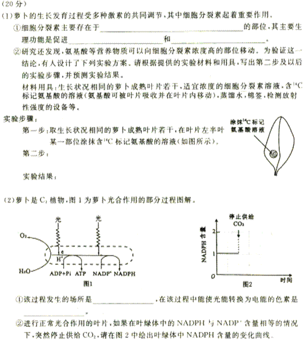 31. (11分)给你两个大小相同的萝卜(新鲜的),10%的盐酸、蔗糖、蒸馏水、显微镜、玻片、小刀、烧杯、吸水纸等材料用具。请从中选用部分器材,用最简单的方法,设计一个小试验,验证植物细胞吸水和失水的原理。