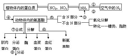 (4)人体若只通过⑥过程获得氨基酸,是由于会缺乏某些____________________________而导致营养不良。