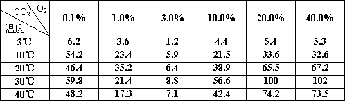 某校生物兴趣小组的同学为了探究植物体呼吸强度的变化规律,选用新鲜菠菜作实验材料测定了在不同温度和不同氧浓度下,一定大小的菠菜叶的二氧化碳释放量(表中为相对值),测定数据如下表。请据表分析回答