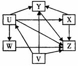 图示由5个物种(U,V,W,X,Y)组成的一个生态系统的食物网,Z表示分解者,箭头表示能量流动的方向。下列叙述不正确的有: