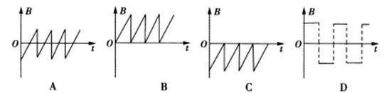 20.如图所示是电视机的显像管的结构示意图,荧光屏平面位于坐标平面xOz,y轴是显像管的纵轴线。位于显像管尾部的灯丝被电流加热后会有电子逸出,这些电子在加速电压的作用下以很高的速度沿y轴向其正方向射出,构成了显像管的“电子枪”。如果没有其它力的作用,从电子枪发射出的高速电子将做匀速直线运动打到坐标原点O,使荧光屏的正中间出现一个亮点。当在显像管的管颈处的较小区域(图中B部分)加沿z轴方向的磁场(偏转磁场),亮点将偏离原点O而打在x轴上的某一点,偏离的方向和距离大小依赖于磁场的磁感应强度B。为使荧光屏上出现沿x轴的一条贯穿全屏的水平亮线(电子束的水平扫描运动),偏转磁场的磁感应强度随时间变化的规律是下列情况中的哪一个