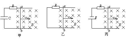 A.甲、丙中,ab棒最终将以不同的速度做匀速运动;乙中, ab棒最终静止?