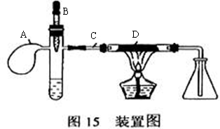 28.(19分)已知某重金属化合物能催化H2O2的分解。氨气和氧气的混合气体在一定的组成范围内点燃时能剧烈燃烧而发生爆炸。下图是氨的催化氧化的实验装置。试管中加入适量浓氨水并滴入2ml 5%AgNO3溶液;B为胶头滴管,预先吸有25%的H2O2溶液;A是一只气球;C为一段废温度计的玻璃柱,内有很细的小孔,能让气体限量通过;D中装有铂石棉催化剂。点燃酒精灯一段时间后,将B中的H2O2溶液慢慢地滴入试管,试管中产生大量气体使气球鼓起。不久,锥形瓶内出现红棕色气体。回答下列问题: