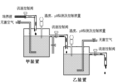 在生产实践中,人们设计 了高效、自控、产品质量较稳定的两级连续培养装置,回答有关问题:
