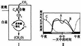 CO2的过程;图Ⅱ表示的是A、B、C三类植物在夏季晴朗的一天中气孔的开放情况。下列说法正确的是