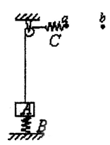 (15分)如图所示,质量为m的物体A压在置于水平面上的劲度系数为k1的竖直轻弹簧B上。用细绳跨过定滑轮将物体A与另一根劲度系数为k2的轻弹簧C连接。当弹簧C处在水平位置且未发生形变时,其右端点位于a位置。将弹簧C的右端点沿水平缓慢拉到b位置时,弹簧B对物体A的拉力大小恰好等于A的重力。求: