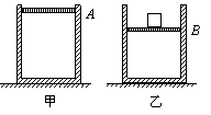 如图甲所示,内壁光滑的绝热气缸竖直立于地面上,绝热活塞将一定质量的气体封闭在气缸中,活塞静止时处于A位置。现将一重物轻轻地放在活塞上,活塞最终静止在如图乙所示的B位置。设分子之间除相互碰撞以外的作用力可忽略不计,则活塞在B位置时与活塞在A位置时相比较