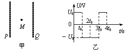 18.如图甲所示,两个平行金属板P、Q正对竖直放置,两板间加上如图(乙)所示的交变电压。t=0时,Q板比P板电势高U0,在两板的正中央M点有一电子在电场力作用下由静止开始运动(电子所受重力可忽略不计),已知电子在0~4t0时间内未与两板相碰。则电子速度方向向左且速度大小逐渐增大的时间是