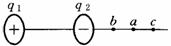 如图所示,q1和q2是两个位置固定的正、负点电荷,在它们直线延长线上的a点,电场强度恰好为零。现将一个正电荷q从a点左边的b点沿bac直线移到右边的c点,该电荷的电势能将