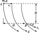 21.空间某区域内存在着电场,电场线在竖直平面上的分布如图所示,一个质量为m、电量为q的小球在该电场中运动,小球经过A点时的速度大小为v1,方向水平向右,运动至B点时的速度大小为v2,运动方向与水平方向之间的夹角为α,A、B两点之间的高度差与水平距离均为H,则以下判断中正确的是