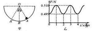 ,均小于100,图乙表示滑块对器壁的压力F随时间t变化的曲线,且图中t=0为滑块从A点开始运动的时刻。试根据力学规律和题中(包括图中)所给的信息,求小滑块的质量、容器的半径及滑块运动过程中的守恒量。(g取10m/s2)