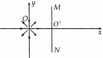 22.(20分)如图所示,在直角坐标系的原点O处有一放射源,向四周均匀发射速度大小相等、方向都平行于纸面的带电粒子,在放射源右边有一垂直于x轴放置的很薄的挡板,挡板与xOy平面交线的两端M、N与原点O正好构成等腰直角三角形。已知带电粒子的质量为m,带电量为q,速率为v,MN的长度为L。