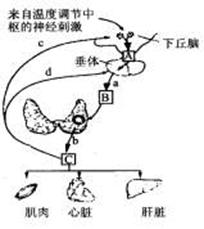 Ⅱ. 图为正常人受到寒冷刺激时的部分调节过程。A,B,C表示调节物质,a,b,c,d表示调节效应。据图分析回答([ ]内填物质编号)。