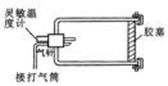 (1)如图所示,厚壁容器的一端通过胶塞插进一支灵敏温度计和一根气针,另一端有个用卡子卡住的可移动胶塞。用打气筒慢慢向容器内打气,使容器内的压强增大到一定程度,这时读出温度计示数。打开卡子,胶塞冲出容器口后( )