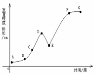 5. 下面为某种蛙个体发育程度随时间变化的关系曲线,G点时可见青蛙产卵。据图判断下列说法正确的是