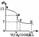 10.25℃时,在25mL0.1mol/L的氢氧化钠溶液中,逐滴加入0.2mol/LCH3COOH,溶液的pH的变化曲线如图所示,下列分析的结论正确的是
