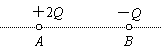 如图所示,在A点放置电量为+2Q的小球,在B点放置电量为-Q的小球。现引入第三个带电小球C带电量是q,刚好使这三个小球都处于平衡状态,则: