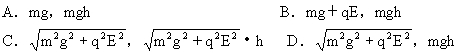 如图所示,场强为E的水平方向匀强电场中,有一质量为m、电量为+q的微粒,在外力作用下,从A点竖直向上移至B点,且速度不变,若AB长为h,则这一过程中外力的大小和外力做的功为 ![]()