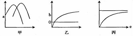 ③光照强度与光合作用速率的关系变量:Ⅰ.CO2的吸收量(释放量);Ⅱ.温度;Ⅲ.生长速度,下列关于甲、乙、丙所表示的生命现象及a、b、c所表示的变量组合正确的一组是: