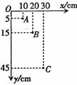 ③某同学在实验中得到如图所示的A、B、C三个点,其坐标如图4所示,坐标原点为抛出点,其中