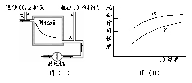 片置于同化箱中,在特定的光照、温度条件下,让空气沿箭头方向流动,并检测通入和