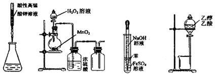 A.滴定FeSO4溶液 B.制取O2 C.制备Fe(OH)2 D.除去乙醇中的乙酸 9、设NA表示阿伏加德罗常数的数值,下列说法正确的是 A.用惰性电极电解500mL饱和食盐水,若溶液的pH值变为14时,则电极上转移的