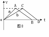 后撤去推力,物体继续运动一段距离后停下. 两物体的v-t图线如图8所示,图中