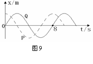 18.如图9所示,虚线和实线分别为一列简谐横波上两质点P、Q的振动图象,两质点相距