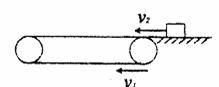端有一个与传送带等高的光滑水平面,一物体以恒定的速率v2,沿直线向左滑向传送带