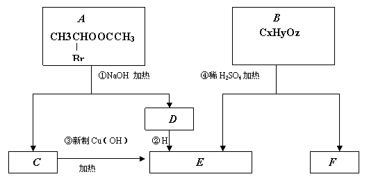 (2)已知B的相对分子质量为162,其燃烧产物中n(CO2):n(H2O)=2:1则B的分子式为 ,F的分子式为 。
